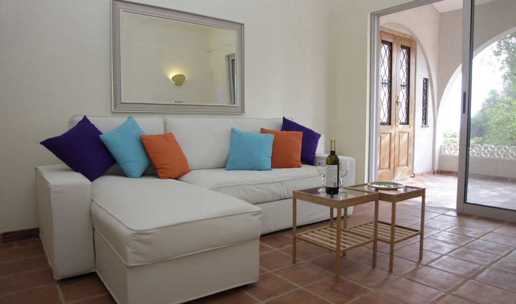 You have access to a living room of 5x6 meters, with traditional tiles on the floor that face south. There is ample seating, with a large (sliding) window, a screen door, and access to the south-facing terrace and view of the pool. A strong ceiling fan provides any necessary cooling. There is WiFi and satellite TV with many Dutch and foreign channels.