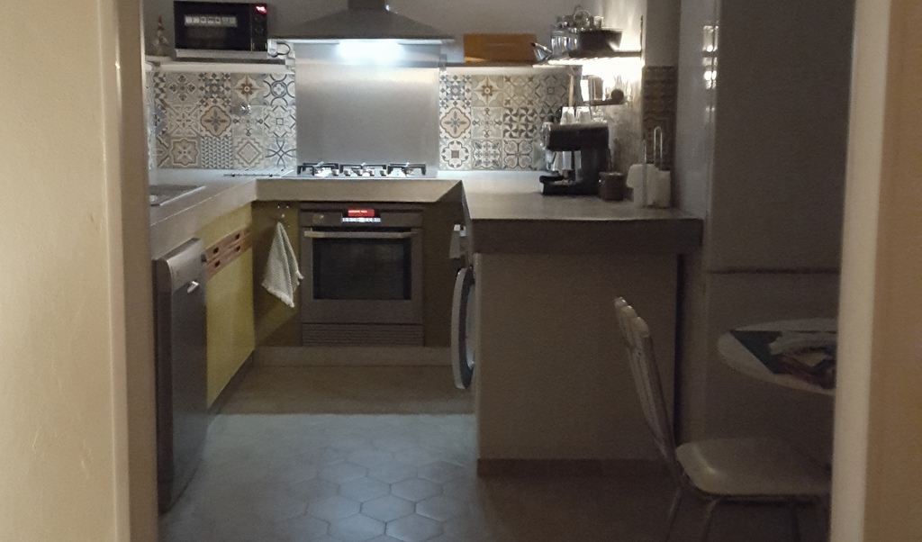 De keuken beschikt over een complete reeks apparaten, waaronder een wasmachine, vaatwasser, oven, magnetron en espressomachine. Het gaat naadloos over in de woonkamer, met gemakkelijke toegang vanaf het terras dat grenst aan het zwembad.