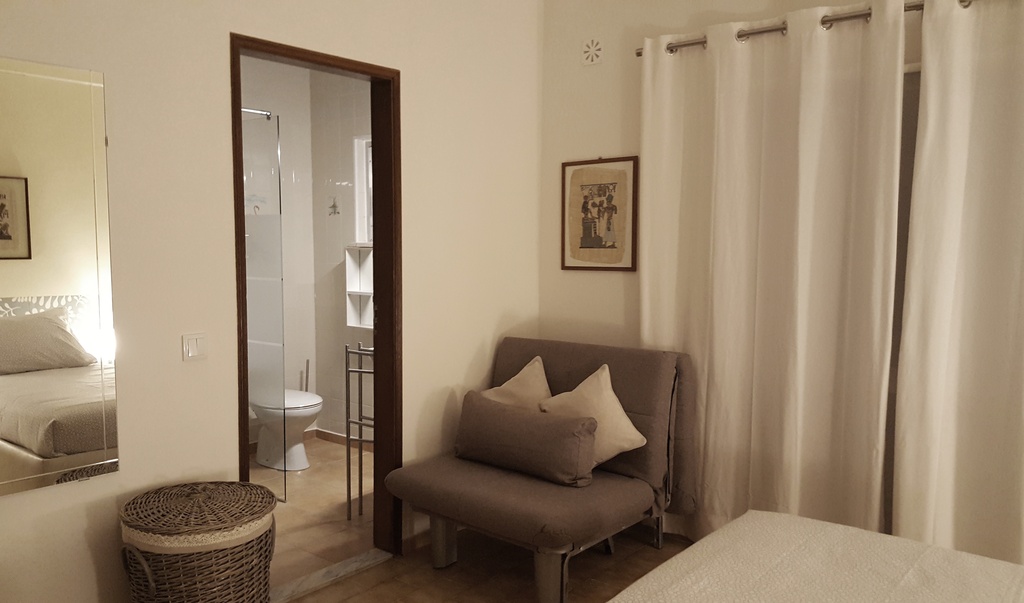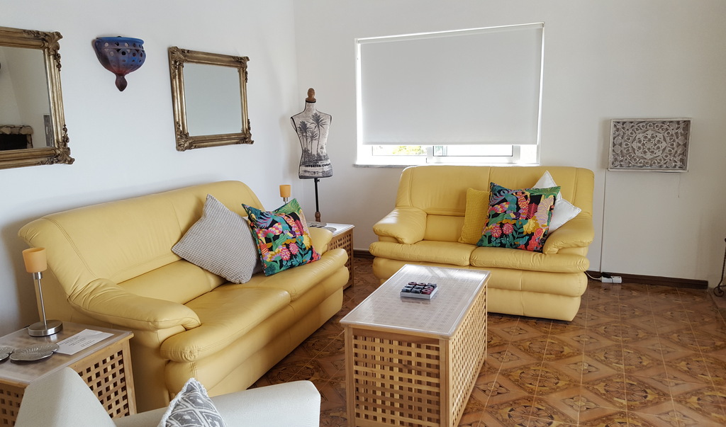 Je hebt toegang tot een woonkamer van 6 bij 6 meter, met traditionele vloertegels. De woonkamer is op het zuiden gericht. De ruimte biedt ruime zitgelegenheid en beschikt over grote schuifdeuren, een hordeur en toegang tot het zonnige terras met uitzicht op het zwembad. Een krachtige plafondventilator zorgt voor de nodige verkoeling. Daarnaast is er WiFi en satelliet-tv met een breed scala aan Nederlandse en buitenlandse kanalen.